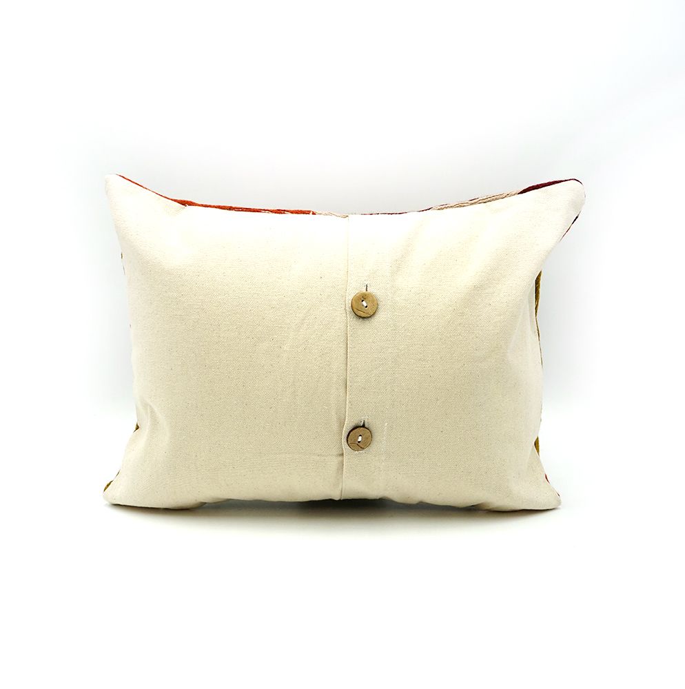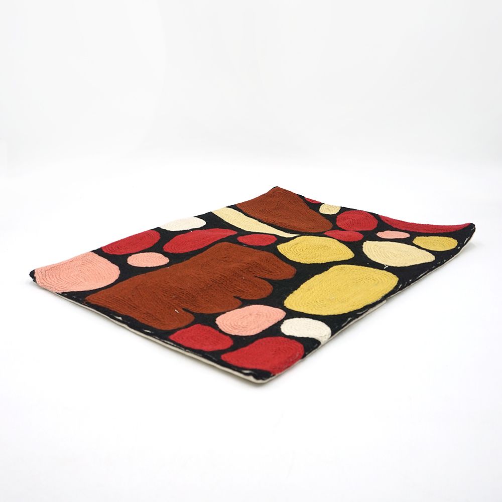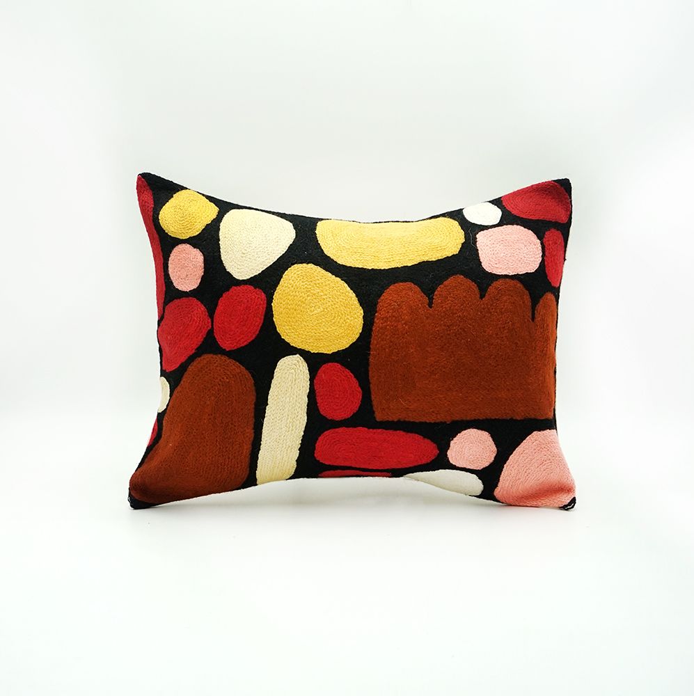 Handmade cushion cover, combining Australian Aboriginal designs and Traditional Kashmiri cross stitch handicraft.